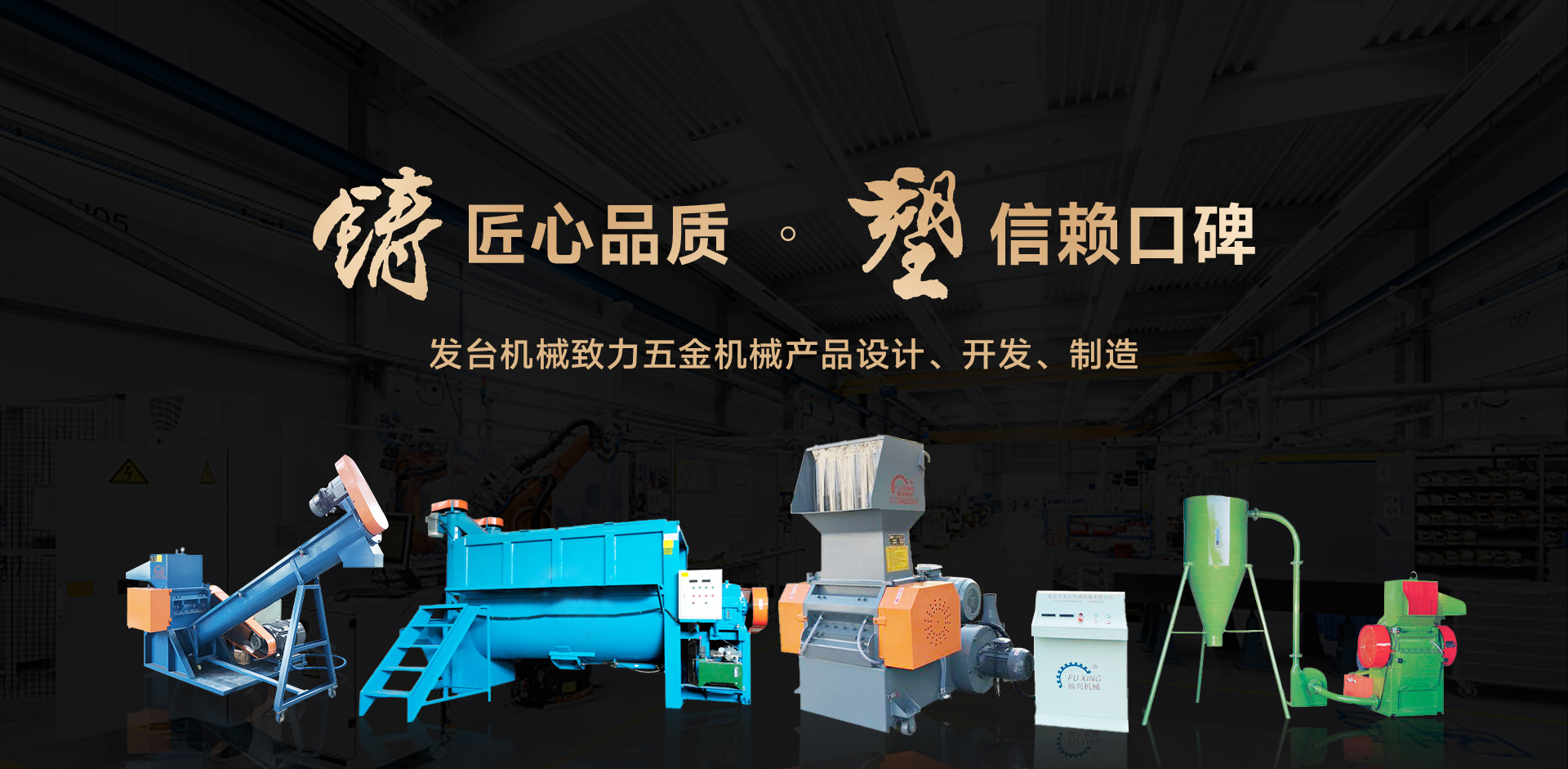 南安市發臺機械制造有限公司是一家從事五金機械行業有著三十幾年經驗的大型企業,無論是產品設計、開發、制造都有著豐富的經驗;于2004年在大陸設廠——南安市福興塑料機械制造廠。專業生產塑膠周邊設備:超大型強力粉碎機、超大型 臥式攪拌烘干機、混色機、螺旋輸送機、切粒機、油壓切斷機、磨刀機、薄膜耳料回收機、注塑水口料回收機、注塑機邊粉碎機、押出造粒機等等。